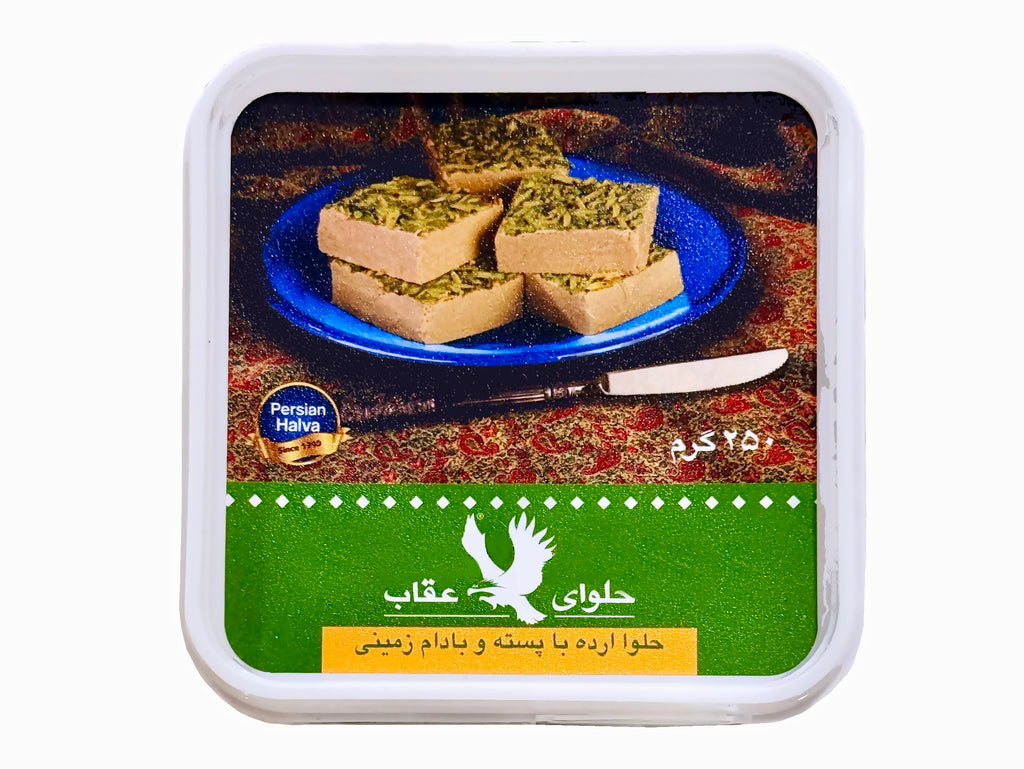 INGREDIENTS(Pistachio): Sesame paste (Tahini) 55%, Sugar, Glucose, Pistachio, Peanut, Monoglyceride (E471), Saponin extract, Rosewater, Citric acid (E330), Vanillin