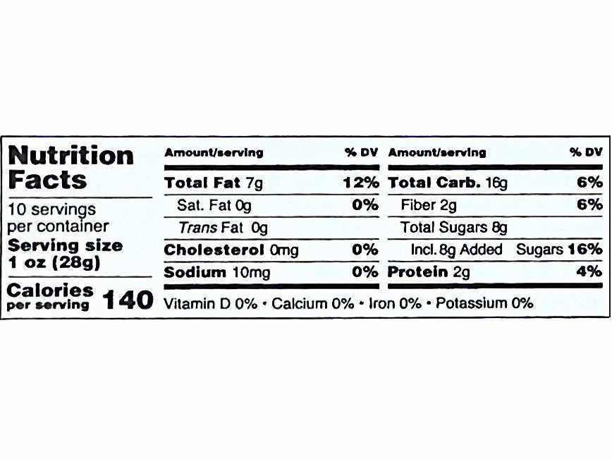 Calories 140 per serving size (1/2 Oz or 14g)