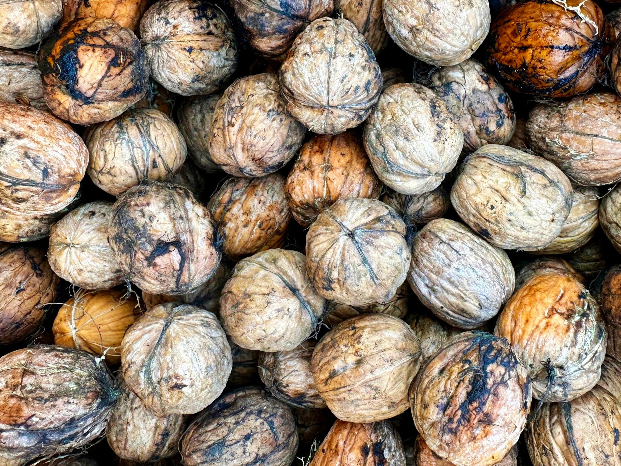 These are fresh Walnuts recently picked from trees, but have their skin peeled off
